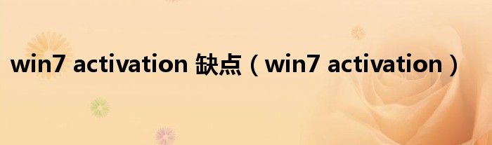今天小饼为大家解答以下问题,关于win7 activation 缺点,win7 activation很多人还不知道,现在让我们一起来看看吧!