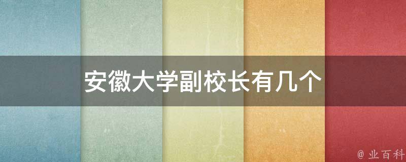 最佳答案安徽大学副校长有1个,即钱家盛。钱家盛,毕业于合肥工业大学,现兼任中国化学会理事、安徽省化学会常务理事兼秘书长。1999-2003年在中国科学技术大学高分子化学与物理专业攻读博士学位。2019年8月任安徽大学副校长。