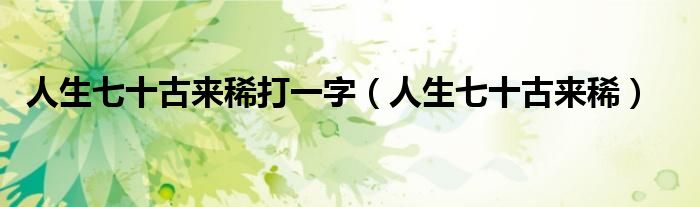 最佳答案大家好,我是小科,我来为大家解答以上问题。人生七十古来稀打一字,人生七十古来稀很多人还不知道,现在让我们一起来看看吧!1、人生七十古来稀2、意思是:能活到70岁的人,自古以来是很少的。3、这是以前的情形。4、现代人,年过70处处有。本文到此讲解完毕了,希望对大家有帮助。
