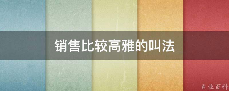 最佳答案销售比较高雅的叫法有业务员、促销员、销售代表等。销售就是把我们自己的产品推荐给别人,通过产品特点,优势等,让别人来购买你的产品,当然,现在的产品有虚拟的,也有实物的,虚拟的一般指网络、服务这些看不见摸不着的东西,而实物就是我们看得到、摸得到的实实在在的东西。