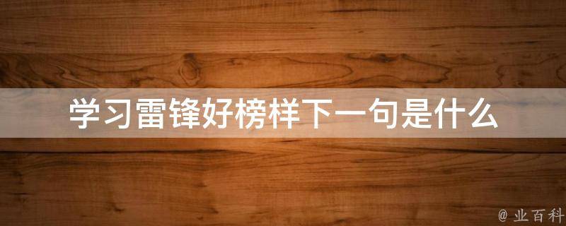 学习雷锋好榜样下一句是什么