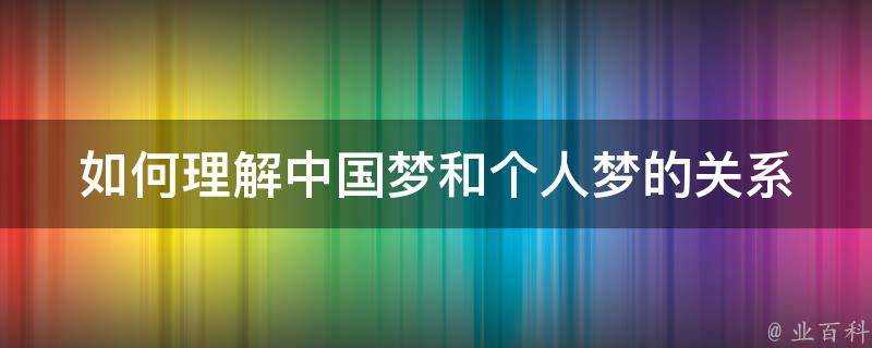 如何理解中国梦和个人梦的关系