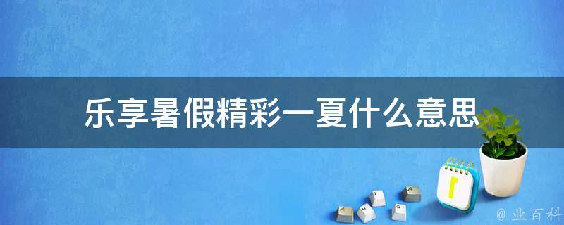 乐享暑假精彩一夏的意思是多姿多彩的活动,让暑假生活既丰富又有意义,孩子们既乐在其中,又能增长见识、开阔视野。暑假注意事项:学生妥善保管好个人物品,暑假期间贵重物品建议带回家,如确实不能带走,务必妥善存放锁好。