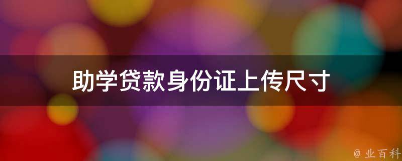 助学贷款身份证上传尺寸通常为35毫米宽x45毫米高。一般要求照片背景为白色或浅色,无杂物或纹理。国家助学贷款是党中央、国务院在社会主义市场经济条件下,利用金融手段完善中国普通高校资助政策体系,加大对普通高校贫困家庭学生资助力度所采取的一项重大措施。