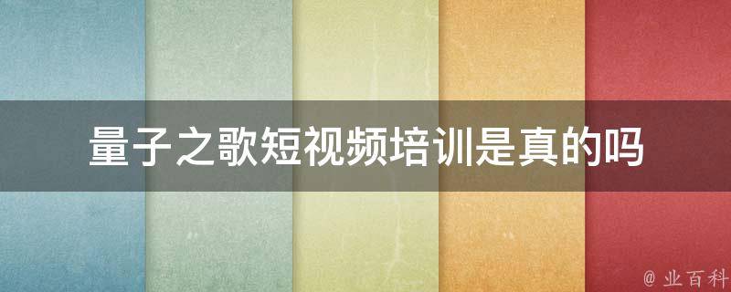 量子之歌短视频培训是真的。量子之歌短视频培训是帮助剪辑爱好者、自媒体从业者等人群敲开短视频创作大门,是真实存在的,但是需要付费,而且还需要学习者有一定的领悟力,要量力而行。量子之歌短视频培训是一个专业的视频剪辑培训课程,旨在帮助学习者掌握视频剪辑的基本技能,以及更深入的视频剪辑技术。