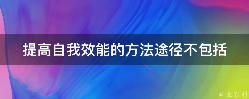 提高自我效能的方法途径不包括他人直接的经验,自我效能可以通过以下4种途径产生和提高:自己成功完成过某行为;他人间接的经验,看到别人成功完成了某行为并且结果良好,而增强了自己通过努力和坚持也可以完成该行为的自信心;通过别人的劝说和成功经历的介绍,对自己执行某行为的自信心增加;激发正面情绪提高自信心。
