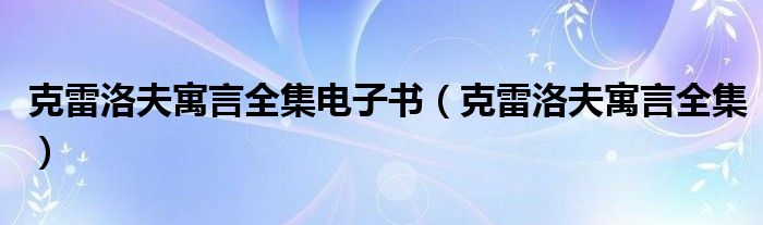 大家好,小联来为大家解答以上的问题。克雷洛夫寓言全集电子书,克雷洛夫寓言全集这个很多人还不知道,现在让我们一起来看看吧!
