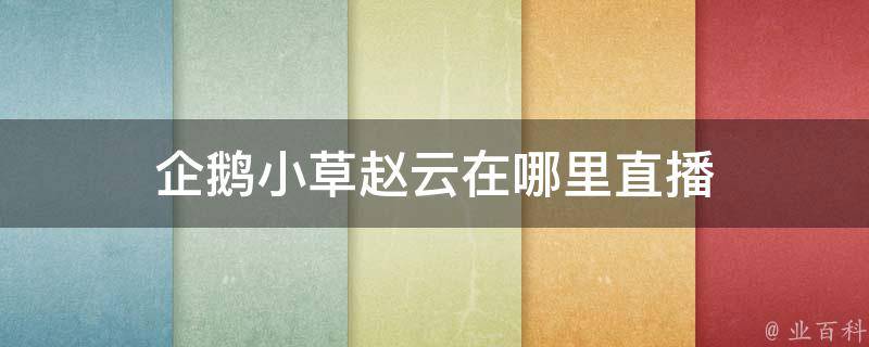 企鹅小草赵云在虎牙直播,虎牙直播是一个互动直播平台,为用户提供高清、流畅而丰富的互动式视频直播服务,旗下产品包括知名游戏直播平台虎牙直播、风靡东南亚和南美的游戏直播平台NimoTV等,产品覆盖PC、Web、移动三端。