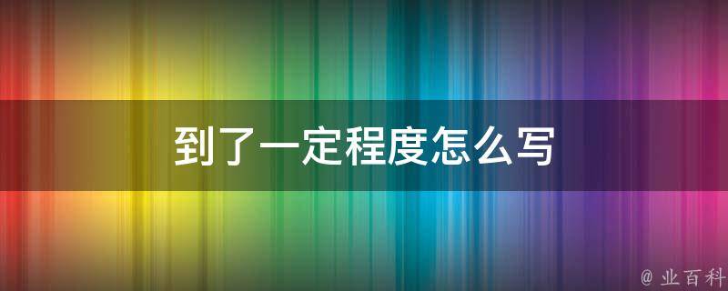 到了一定程度的英语写法是:To a certain extent。certain作形容词时,意为某一、必然的、确信、无疑的、有把握的;作代词时,意为某些、某几个;作名词时,意为人名。extent,主要用作名词,意为程度、长度。