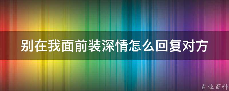 别在我面前装深情,可以回复:深情是需要表现出来的,不存在装不装,毕竟一个人的感情溢于心口了,就会表现出来,这是自然而然的表达方式。说我装的人可能没感受过什么叫深情,只有自己亲身经历过才会体会到其中滋味。