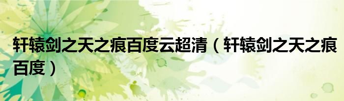 轩辕剑之天之痕百度云超清(轩辕剑之天之痕百度)