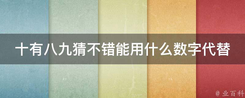 最佳答案十有八九猜不错能用数字9代替,因为十有八九就是9成把握,所以可以用数字9代表。猜谜语主要指暗射事物或文字等供人猜测的隐语,也可引申为蕴含奥秘的事物。谜语源自中国古代民间,历经数千年的演变和发展。它是古代中国劳动人民集体智慧创造的文化产物。