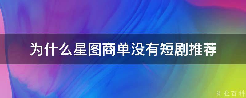 为什么星图商单没有短剧推荐