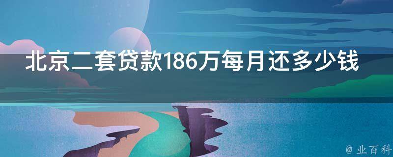 最佳答案北京二套贷款186万每月还多少钱,需要视情况而定。北京地区二套房首付款比例不低于60%,贷款利率不得低于基准利率的1.1倍。假设贷款年限为20年,基准年利率为4.9%,那么每月需要还9793.03元。