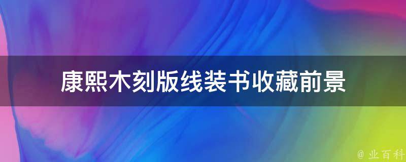 康熙木刻版线装书有较高的收藏价值,前景较好。这类书籍是清代线装书的代表,具有较高的艺术价值和历史价值。康熙木刻版线装书在印刷技术、版式、字体、纸张等方面都有独特之处,其内容涵盖了经、史、子、集等各个领域,是中国古代文化的重要组成部分。随着时间的推移,这些书籍的数量会越来越少,收藏价值也会逐渐提高。