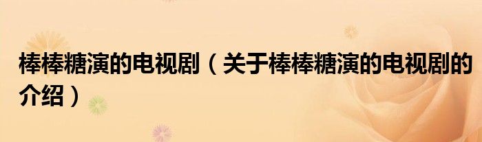 棒棒糖演的电视剧(关于棒棒糖演的电视剧的介绍)