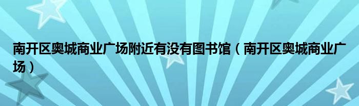 大家好,我是小科,我来为大家解答以上问题。南开区奥城商业广场附近有没有图书馆,南开区奥城商业广场很多人还不知道,现在让我们一起来看看吧!