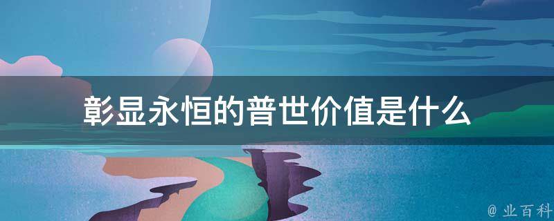 彰显永恒的普世价值是指古今普遍认可的价值观存在,这些价值观包括但不限于追求民主、自由、平等的美好生活等。普世价值从西方文化传统中来。普世一词源于西方基督教,基于对世界本体追问的自然哲学是西方文明普世主义最重要的基因。