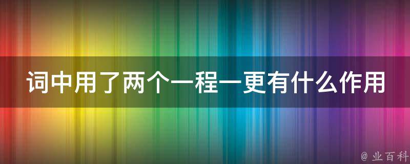 词中用了两个一程一更有强调的作用,突出了路途的漫漫修远。一程的意思是一段路、一些日子。出自唐代元稹《别李十一五绝》诗:万里尚能来远道,一程那忍便分头。一更的意思是晚上7点到9点之间,表示时间。
