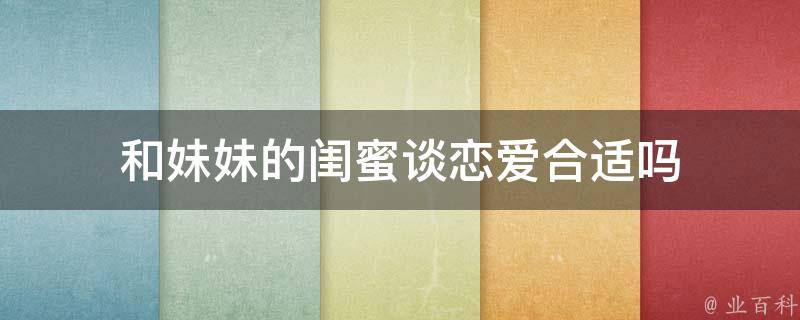 视情况而定。和妹妹的闺蜜谈恋爱是否合适需要考虑到具体情况和个人感受。如果这段关系让你感到幸福和满足,并且没有对其他家庭成员造成负面影响,那么是可以考虑的。但如果这段关系有可能引起家庭矛盾或者感情问题,那么最好慎重考虑并寻求合适的解决方案。