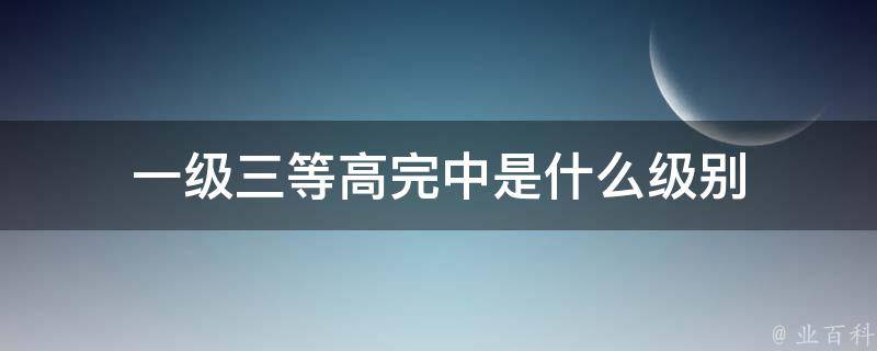 一级三等高完中是重点高中级别,是指达到省一级高完中创建标准、经省教育行政主管部门评审认定的普通高级中学和完全中学。完中是指既有初中又有高中的完全中学。一级完中是教育局根据学校办学历史、办学成绩等多方面因素综合评级的。一级完中又分一级一等、一级二等、一级三等。