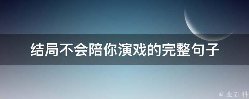 结局不会陪你演戏的完整句子可以是:结局不会陪你演戏,过程再美,也只是个回忆。这句话的意思是,无论你在过程中付出了多少努力和心血,如果最终没有得到想要的结果,那么这一切都只是空洞的回忆,没有任何实际意义。因此,我们应该更加注重结果,而不是过分沉溺于过程。