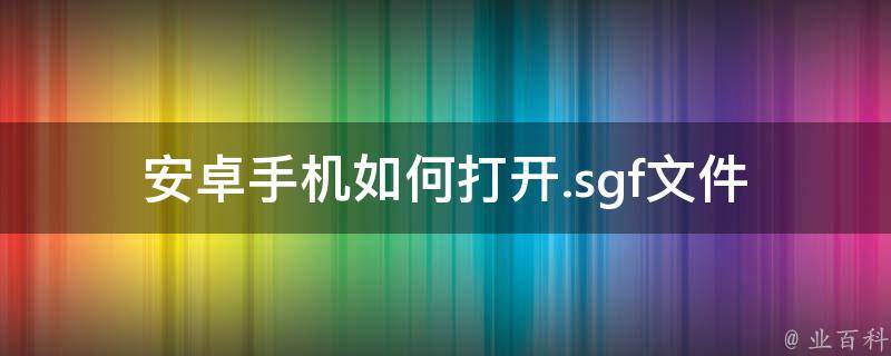 1、将。sgf文件转换为其他格式:可以将.sgf文件转换为其他格式,例如txt、pdf等,然后在安卓手机上使用文本阅读器或PDF查看器打开。