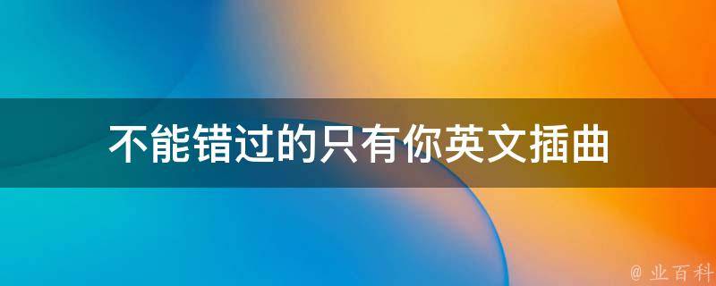 最佳答案不能错过的只有你的英文插曲是《My Heart Will Go On》,是席琳-迪翁演唱的一首歌曲,词曲由詹姆斯-霍纳和威尔-詹宁斯编写,后者负责音乐制作。《My Heart Will Go On》该曲分别获得由第70届奥斯卡金像奖和第55届金球奖颁发的最佳原创歌曲奖。