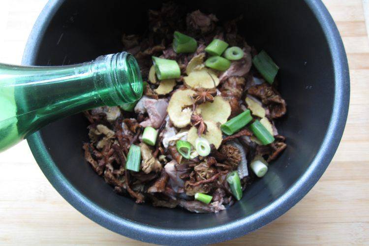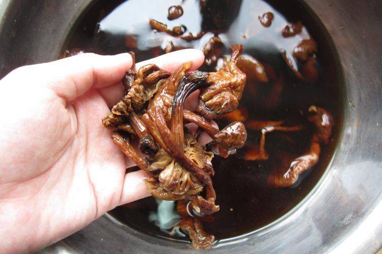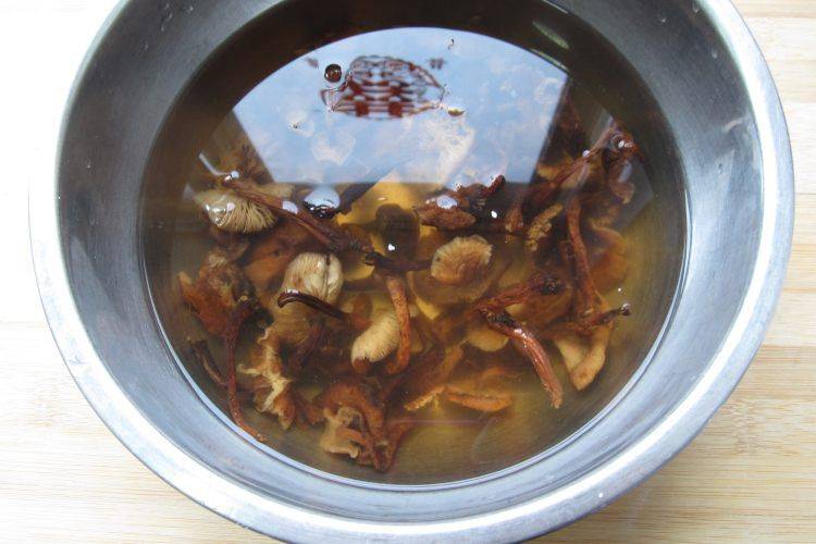 1、干蘑菇泡水。