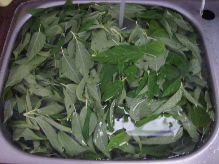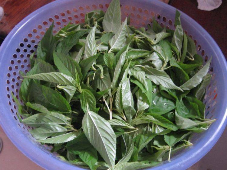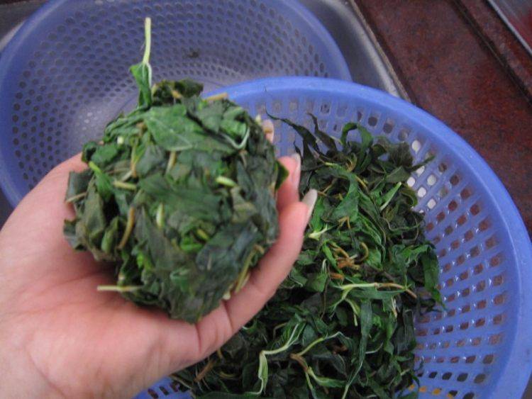 7、置锅火上倒入麻叶(让其蒸发多余水分)。