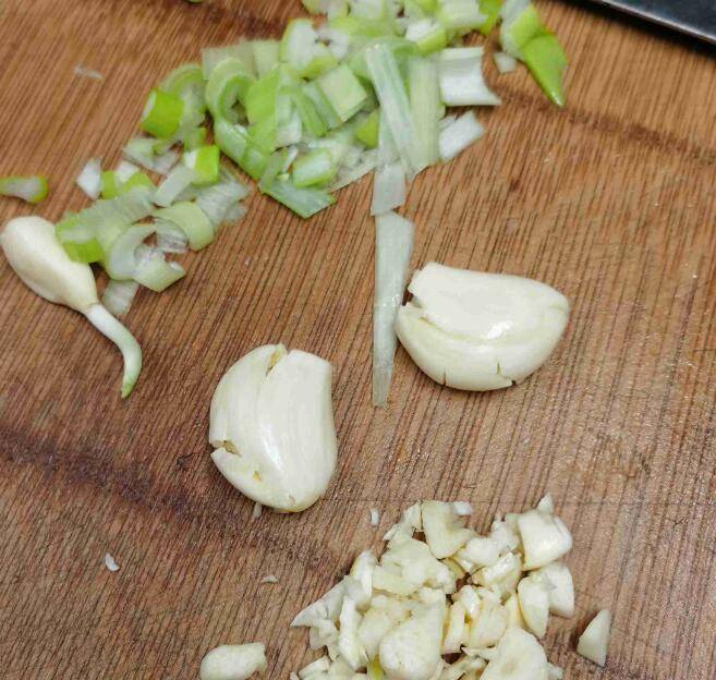 用料:芥菜咸菜一个、盐一小勺、生抽一小勺、鸡精一小勺、蒜两瓣、葱适量。