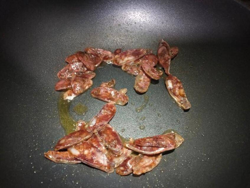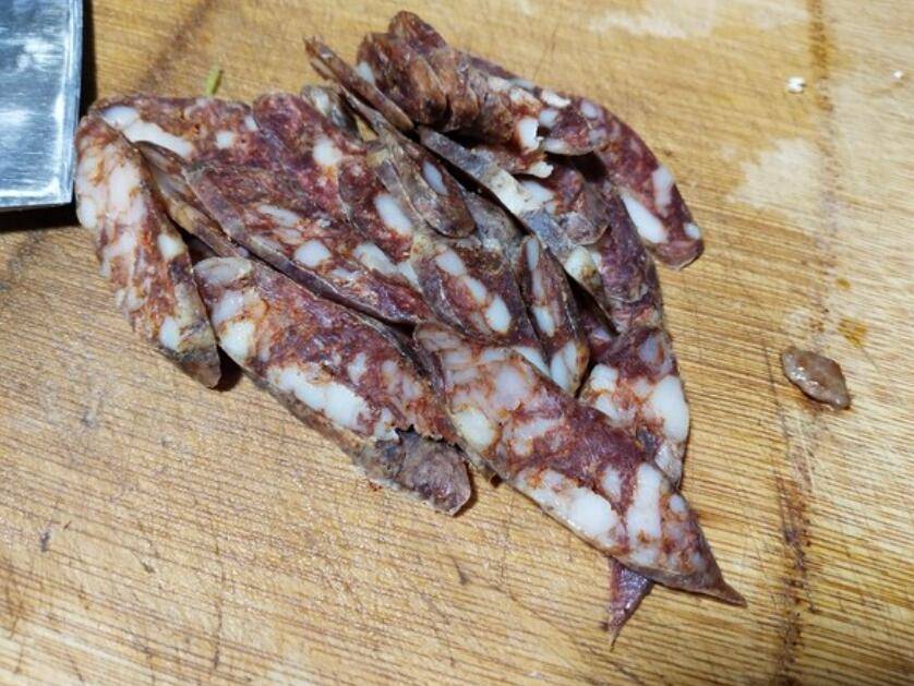 主料:菜豌豆400克、香肠1根、味精适量、盐适量、胡椒适量、酱油适量。