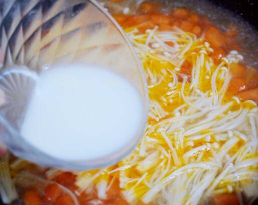 5、再次烧开,放入金针菇。