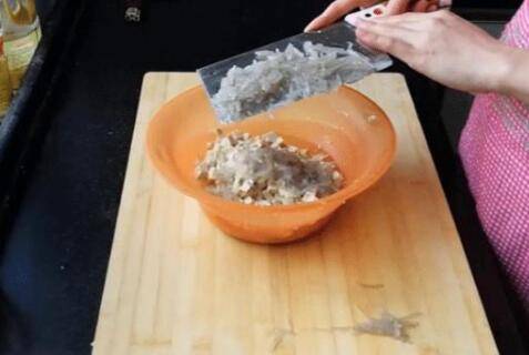 2、将大白菜心剁成末备用。