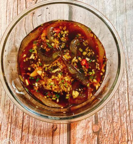 3、放入切碎的姜蒜生姜小米椒,倒入生抽糖醋,少许盐,一盘鲜美的活枪下就成功了,由于是活虾,他Q弹的口感简直让人欲罢不能。根据不同地方的做法,有的加一些芥末,有加一些南乳汁,根据个人的喜好。