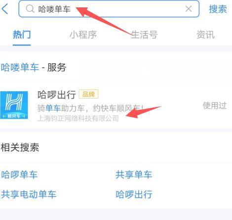 1、打开支付宝,找到哈喽出行小程序,点击并进入。