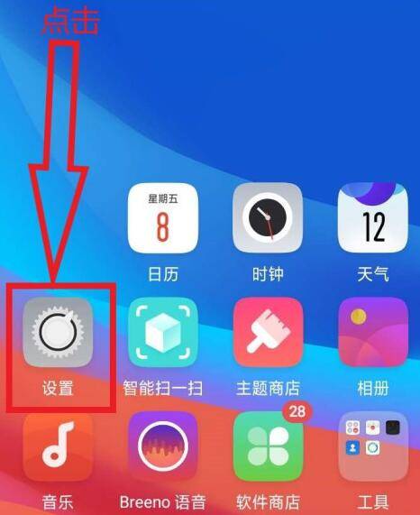 1、打开手机进入系统,点击“设置”图标。