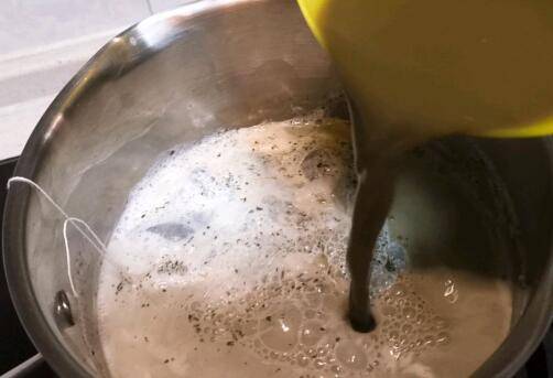 加入绿茶包,煮到牛奶沸腾。加入抹茶水,再次煮开后关火即可。
