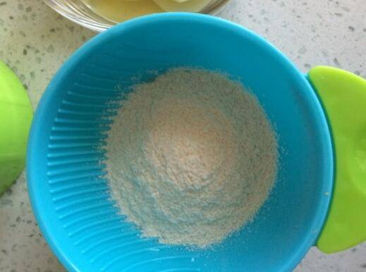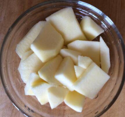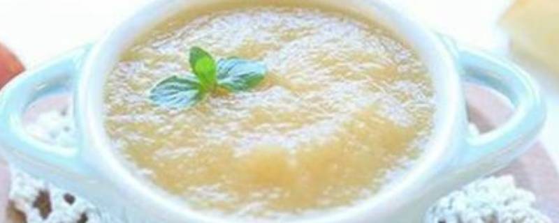 3、5勺米糊,80度水冲开搅匀,和熟苹果一起倒进料理机打糊。