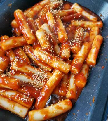 年糕500克、韩式辣酱两勺、糖一勺、番茄酱一勺、陈醋一勺、淀粉一勺、清水半碗。