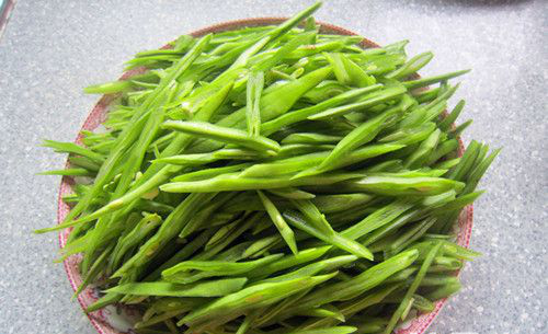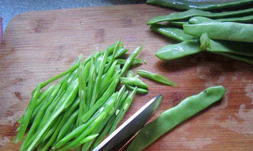 6、将切好的豆角丝倒入,快速均匀地翻炒。