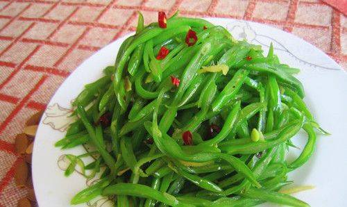 1、准备材料:扁豆角400克、姜葱少许、干红辣椒少许、花椒粒少许、盐少许、橄榄油适量。