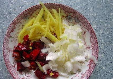 5、炒锅加热放油,放入几颗花椒爆香,随后倒入作料翻炒几下炒出香味。