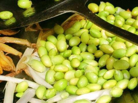 新鲜毛豆剥皮取豆,河蟹对半切开去腮。