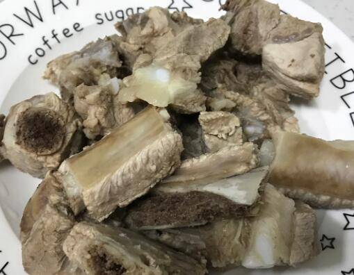 花生用开水烫一下,烫去外皮红色,排骨焯水后沥干待用。