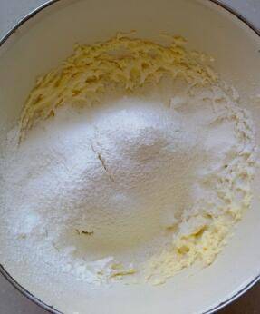 1、黄油从冰箱里拿出来以后提前软化,加入细砂糖,用打蛋器稍微打发。