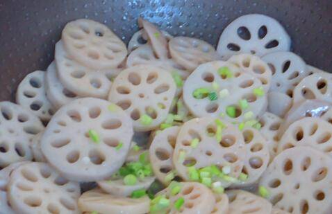 莲藕一个、植物油一勺、盐适量。1、莲藕洗净去蒂、分节;去皮洗净,切片。2、热锅,倒油,放入莲藕片。3、加入适量的清水,翻炒。4、放盐、葱,炒均即可。