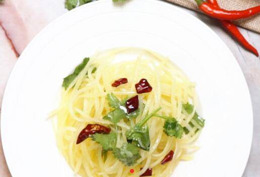 主料:土豆500克。辅料:蒜末5克、香菜1根、花椒2克、干辣椒3克、白醋10克、盐2克。