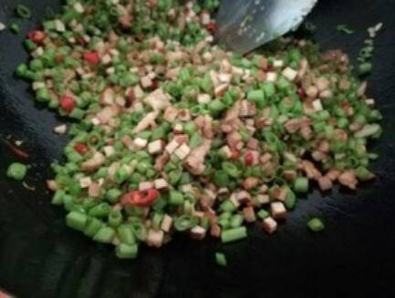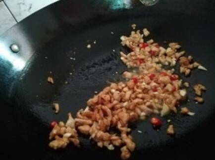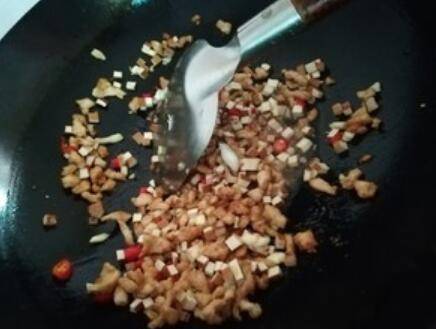 6.加入辣椒蒜末爆香。