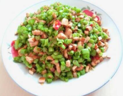 用料:空心梗一把、酱豆干3块、瘦肉一块、小米椒3个、大蒜3瓣、盐适量、生抽适量、老抽适量、淀粉适量、油适量。